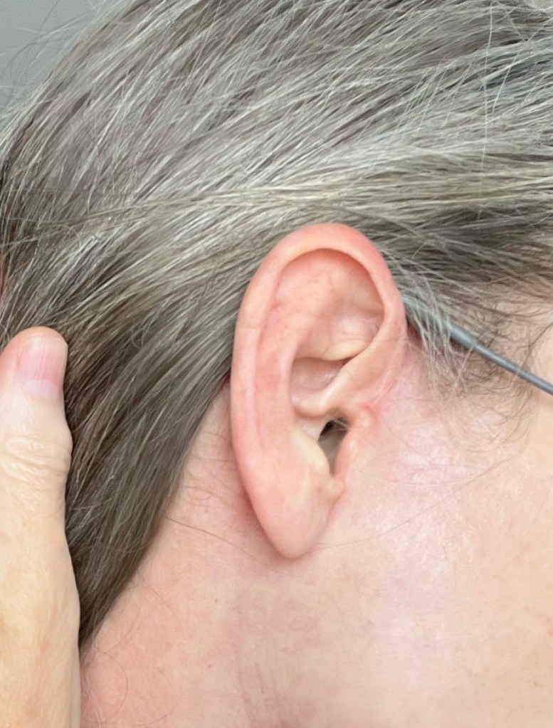 Right ear. The scar is practically invisible!